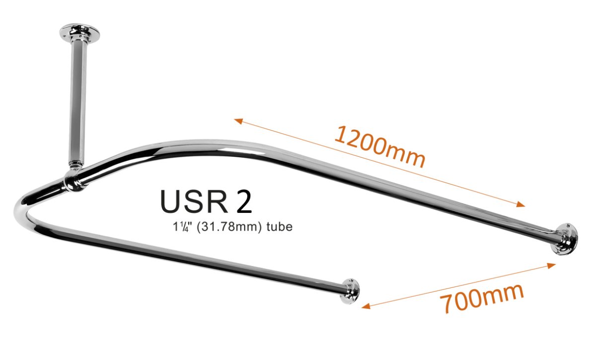 Tubular Brass U Shaped Shower Curtain Rail with Ceiling Fixing in High Quality Nickel Plated Brass
